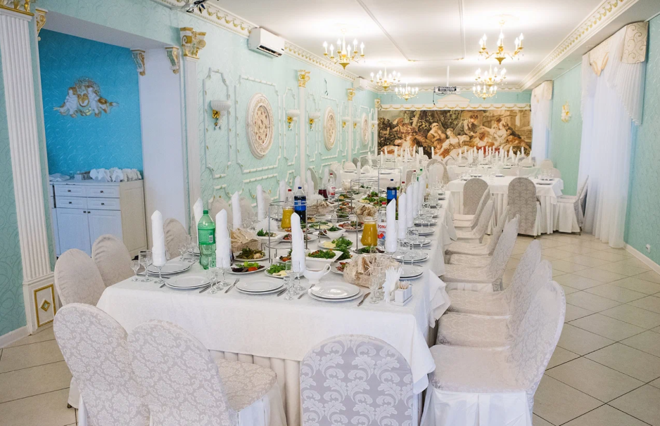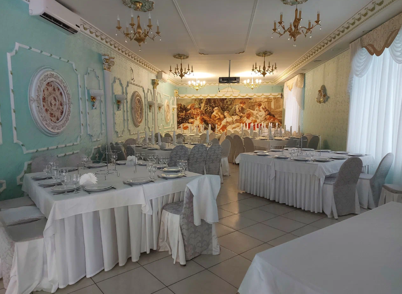 При заказе свадебного банкета — бесплатный номер для молодоженов и 10% скидка на размещение всех гостей мероприятия. Всего 150 посадочных мест.